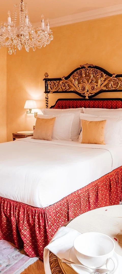 Indulge in the charm and sophistication of our Junior suites, decorated in red and gold or blue and gold. Each Junior suite features a plush queen size double bed and some of them can also accommodate an extra bed.